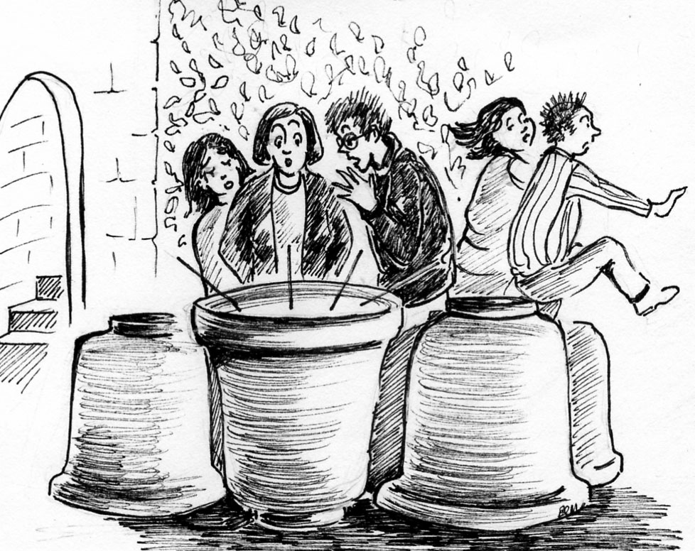 Prior to the AGM in March, members are asked to think of an appropriate caption for a cartoon, the prize being a year’s free subscription to the Guild and entries are judged at the AGM. Once again, many thanks to Barbara for drawing and providing the cartoons and the winning captions and best of the rest are listed below.